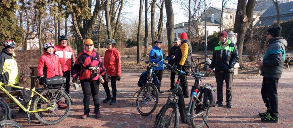 Od czwartku słońca jak z rogu obfitości mitycznej kozy Amaltei*. Jednak znając kapryśną naturę marca, skorzystaliśmy z rady Horacego**stawiając się licznie na ostatniej wycieczce. Na tle wycieczkowej frekwencji w lutym, te 11 osób dzisiaj, to wręcz tłum. Trudno się dziwić, wszak pogoda na rower słoneczna i w pełni przewidywalna – innymi słowy – top control. To pozwoliło poncza przeciwdeszczowe zastąpić, nomen omen, ponczem w innym stanie skupienia. Podobno niezły jest szwedzki „Glogg”. Za sprawą Doroty był podawany w kadarkowej wersji. Grande finale, to znamienita szarlotka Basi w aromatycznej pigwowej osłonie, która poszła w sukurs wiosennej pogodzie, dając w rezultacie radosny wycieczkowy nastrój.