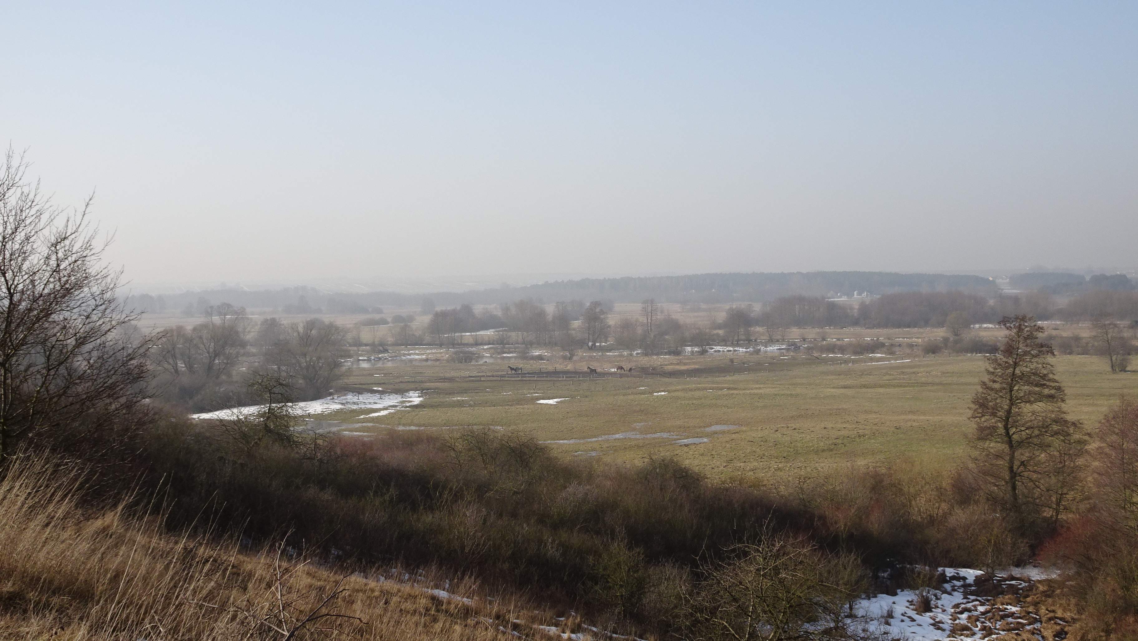Tytuł jest adekwatny w tym sensie, że w stronę Wisły równo jak na snookerowym stole. Można podziwiać rozległe łęgowe krajobrazy, których już na Kielecczyźnie ze świecą szukać, czy przydrożne kapliczki lub okazałe misternie rzeźbione dębowe krzyże wotywne. Szpalery przydrożnych akacji podczas naszego pobytu już zaczynały dekorować asfalt białym kobiercem, podczas gdy te podkieleckie z trudem odnawiały zmrożone listowie. Na tle akacjowej dominacji, stara kasztanowa aleja przy stopnickiej drodze wydaje się być z innego świata. Wszędzie odczuwa się bliskość wielkiej rzeki, chociaż niełatwo ją dostrzec. O tej porze, wiosennej ciszy akompaniuje miarowe kukanie. Jedynie głos żółtej wilgi, którą już mało kto widział, od czasu do czasu przerywa tę miłą dla ucha monotonię.